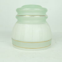 Green & white frosted shade with gold trim.