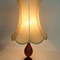Tall, shaped lamp. Mahogany base, coupled with tall vintage linen shade