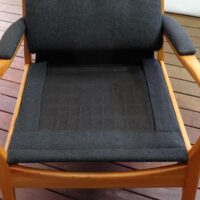 This chair shape is very similar to a Cintique model, but as it’s made in Rimu – it was almost certainly made in NZ – possibly Modern Chair Ltd Mt Roskill, Auckland – Circa 1960.