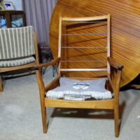 Full restoration – repair & renew chair frames & structure. New upholstery – done by FiF in-house upholsterers. New Dunlop foam, springs replaced where required, Beautiful!